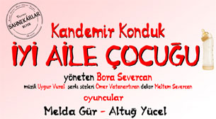 Feb 27Kandemir Konduk’un kaleme aldığı ve Bora Severcan’ın yönettiği “İyi Aile Çocuğu” adlı oyunumuz, Tiyatro SAHNEKARLAR’ın 2013 sezonu için hazırladağı bir prestij projesidir. Oyunun özgün şarkılarını Uygur Vural besteledi ve şarkı sözlerini Ömer Vatanartıran yazdı. Şarkıları oyuncuların yanı sıra süpriz star isimler seslendiriyor.Oyunun konusu kısaca şöyledir: Toplumun ön yargılar sonucu dışladığı iki anti kahraman Emel ve Rüya zar zor geçiniyorlardır. Ekmek paralarını yatak odalarından çıkaran bu ikili bir gece evlerine dönerken çöp kutusuna ölmek üzere terk edilmiş bir bebek bulurlar.Rüya onu karakola teslim etmek ister, ama Emel hayatı kötü başlayan bu bebeğin hayatını kurtarmak ister ve ona kendisi bakmaya karar verir. Emel’e göre hayatta herşey sevgi sayesinde düzelebilecekken, Rüya ise hayatın acı, kaderin tatsız olduğuna inanmakta ısrar eder.