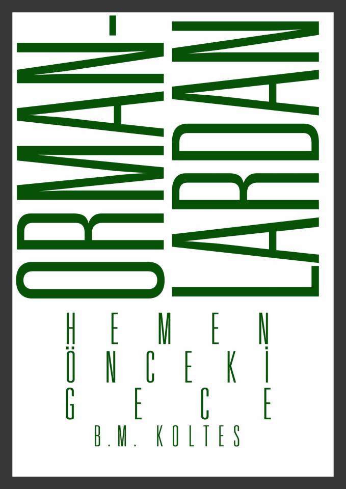 Bernard-Marie Koltès’in Ormanlardan Hemen Önceki Gece isimli oyunu, bulunduğu şehre, ev bildiği otel odalarına, kendine, kısaca onu saran her şeye yabancı bir adamın birader bulma arayışını anlatır. Yazarın otobiyografik ögeler de kattığı bu hikayede, bir yabancı başka bir yabancı tutar kolundan, sağanak yağmur altında, başlar anlatmaya; kimdir, nedir ne değildir, başına ne gelmiştir…