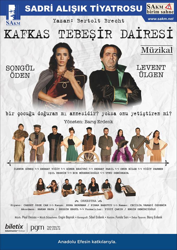 Bertolt Brecht’in 1944 yılında yazdığı Kafkas Tebeşir Dairesi, dünyanın her yeri için geçerli olan insanlık temasını işleyerek din, dil, ırk, mezhep ayrımı gözetmeden dünya insanına seçenek yaşama biçimi sunuyor ve bir insanlık mücadelesinin iç yüzüne iniyor. Evrensel bir nitelik taşıyan; iyilik, dürüstlük, özveri, mülkiyet gibi “insanlık değerlerinin”, çok farklı karşılıklar bulabildiği bir masaldan hareket eden Kafkas Tebeşir Dairesi müzikli oyunu hem şarkıları hem dansları hem de hikayesiyle yeni sezonun en iddialı oyunu olmaya hazırlanıyor.