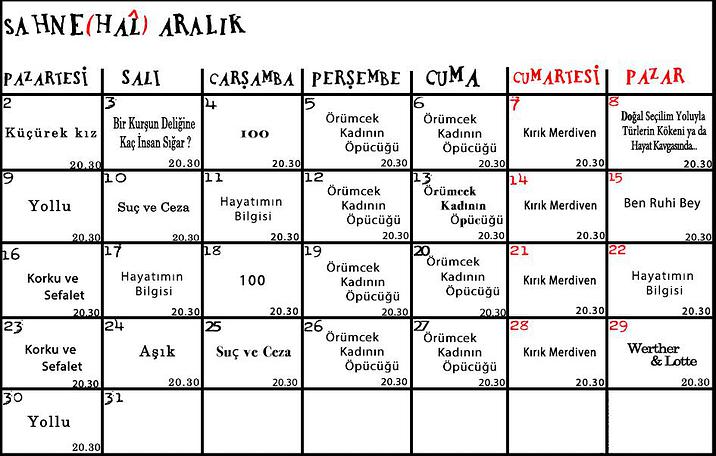 Sahne Hâl Aralık 2013 Oyun Düzeni !
