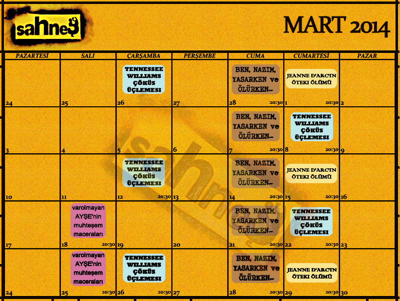 7, 14, 21, 28 Mart 2014 Cuma saat 20:30