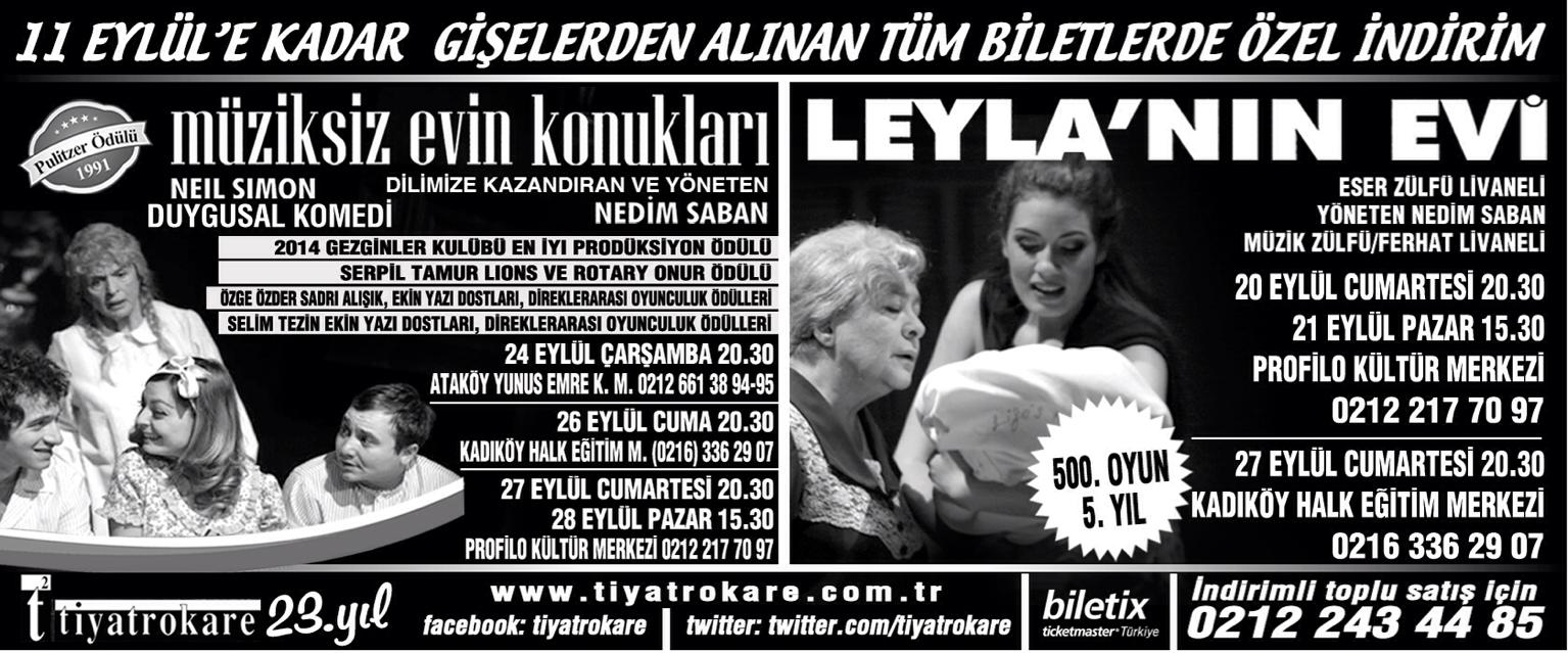Tiyatrokare’de yeni sezon 5. yılına giren Leyla’nın Evi ve geçen sezon sahnelenmeye başlayan Müziksiz Evin Konukları oyunu ile başlıyor!