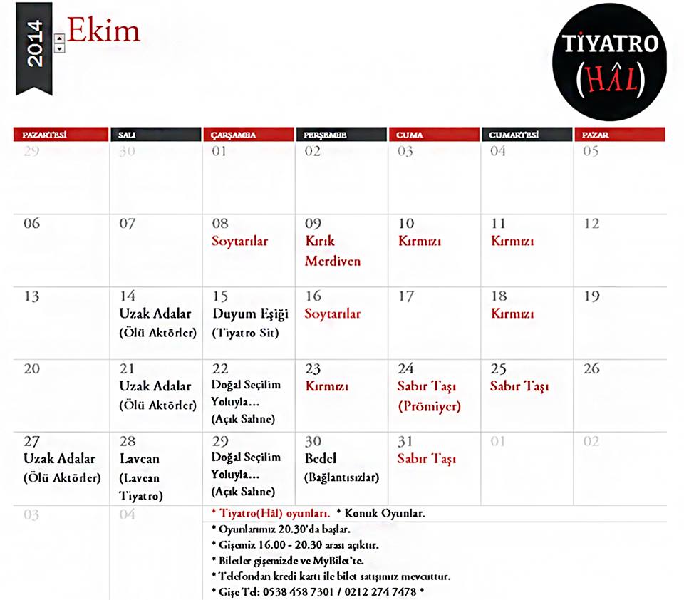 Tiyatro Hâl Ekim 2014 Oyun Programı