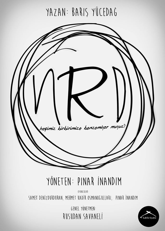 “NRD” günlük hayatın diyaloglarından oluşuyor.Oyun kişileri diyaloglarını kendi iç seslerinin yardımıyla yarattığı monologlar üzerinden kuruyor. Oyun kişileri arası kurulan her diyalog bir yap-bozun parçalarını bütünler nitelikteki monologlardan oluşuyor. İnsanın gündelik yaşantısında kendini soyutlayarak girdiği saklanma kaygısıyla edindiği yüzlerin uçurumu oyun kişilerinin bir çeşit var olma çabasına girdiği kısıtlımekan üzerinden veriliyor.