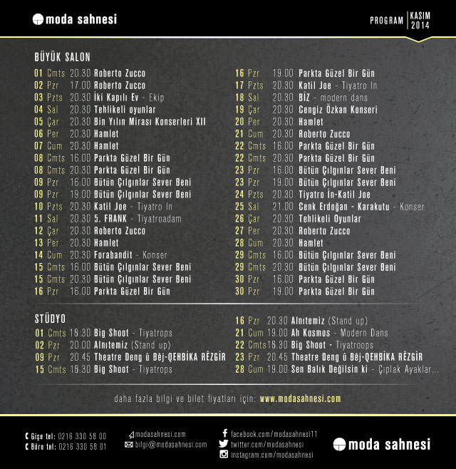 Moda Sahnesi Kasım 2014 Oyun Programı