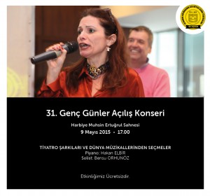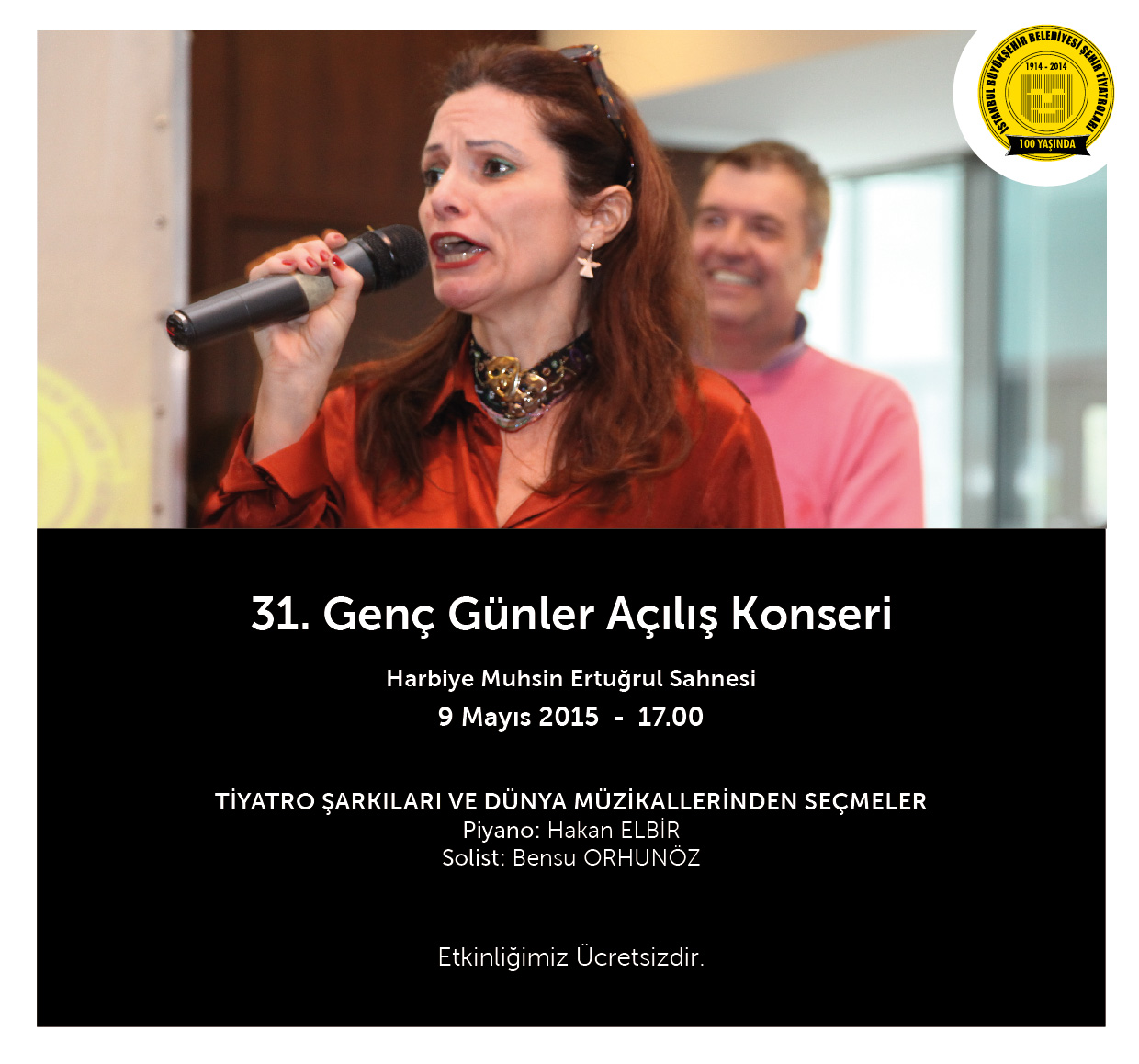 İstanbul Büyükşehir Belediyesi Şehir Tiyatroları’nın düzenlediği 31.Genç Günler, 9 Mayıs 2015 Cumartesi günü saat 17.00’de Harbiye Muhsin Ertuğrul Sahnesi’nde Hakan Elbir ve Bensu Orhunöz’ün açılış konseri ile başlıyor.