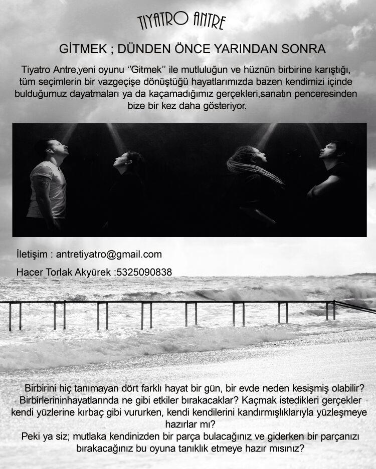 Jan 23Tiyatro Antre’nin 22 Ocak’ta prömiyer yapan yeni oyunu Gitmek 26 ve 29 Ocak’ta Living Room sahnesinde seyircisiyle buluşmaya devam edecek!