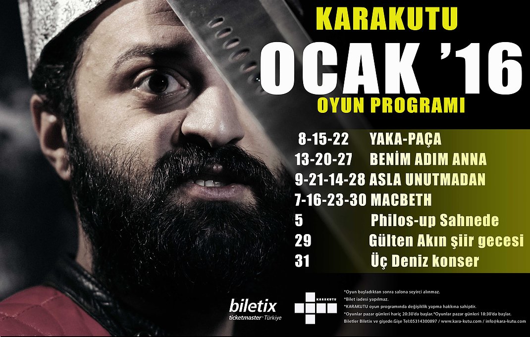 Biletler : Tam 40,– TL , İndirimli 25,– TL